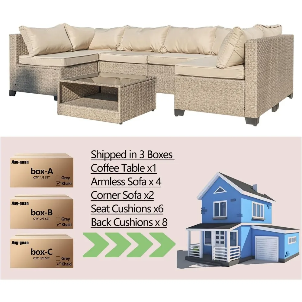 7-Piece Patio Furniture Set, All-Weather Outdoor Sectional Sofa with Water Resistant Cushions